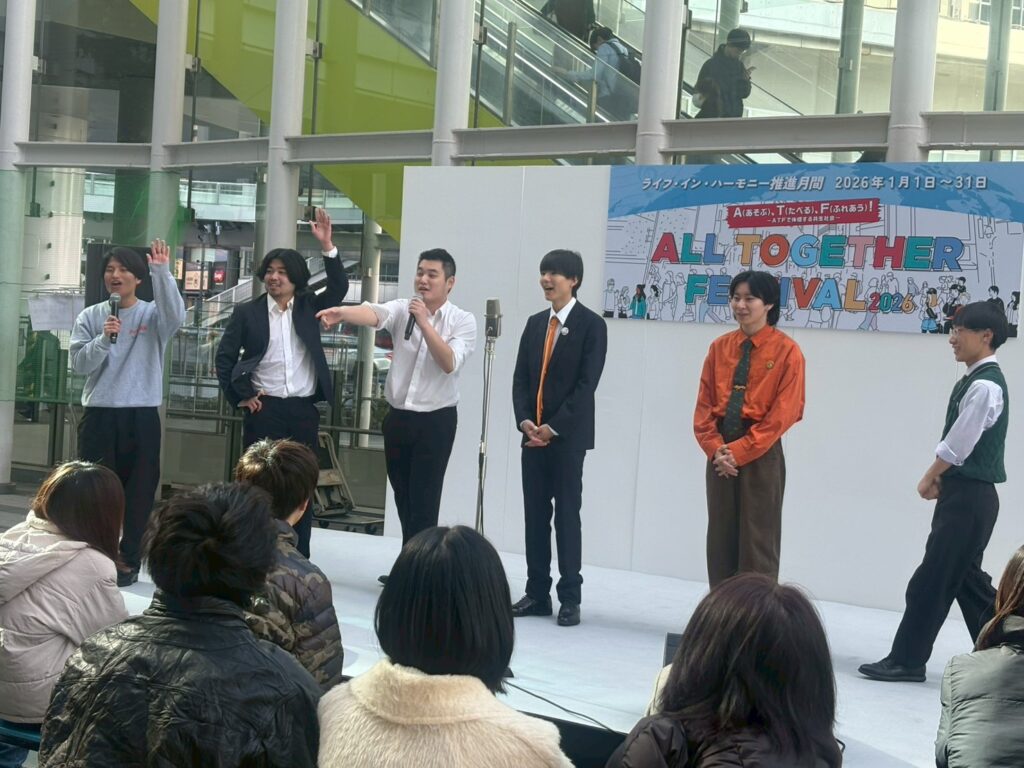 屋外ステージに出演した「お笑い学生連合」は 2大学(4チーム)が 初めて体験する屋外ステージで奮闘! 会場の特性を活かしたネタで会場を沸かせました。